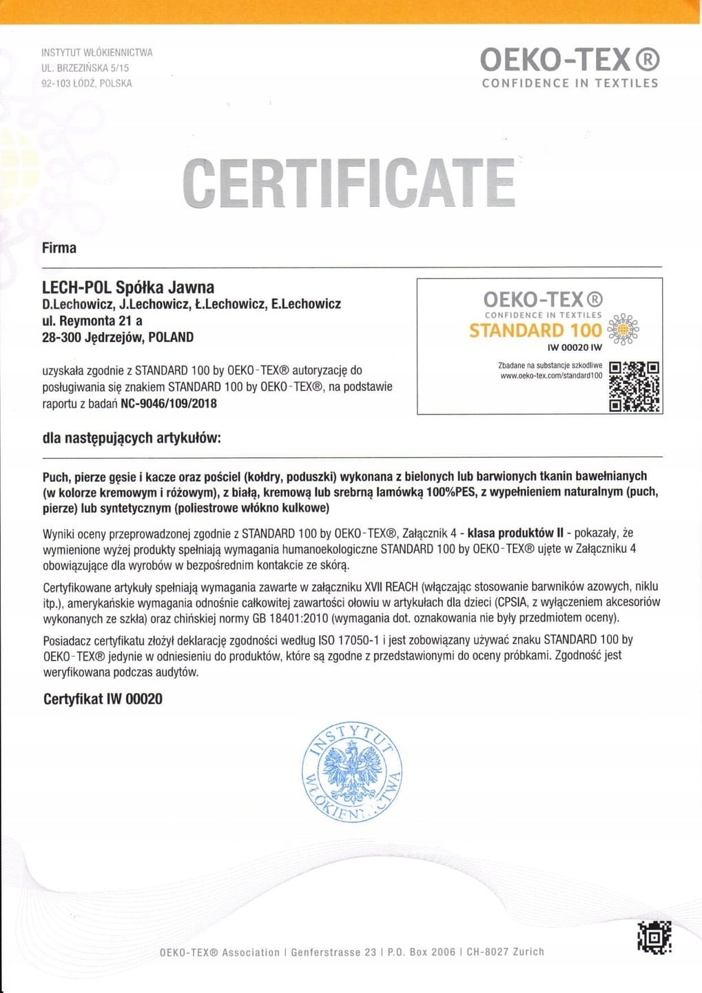 Jako nieliczni sprzedający posiadamy Certyfikat na produkt